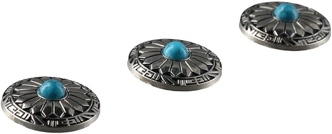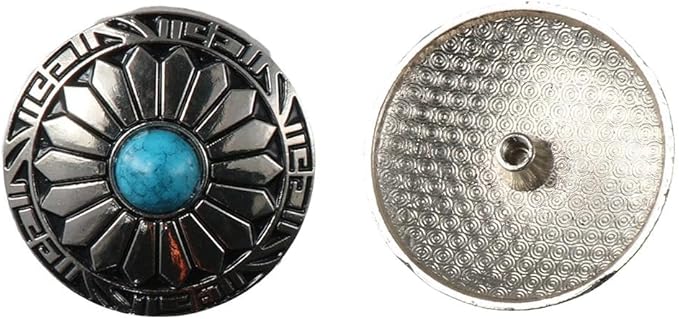 10個 30mm ターコイズ ラウンドコンチョ シルバーメタルスクリューバックボタン メタルサンフラワーボタン ヴィンテージブルーバーコイズボタン DIYウォレット、バッグ、ベルト、サドル、帽子、洋服用