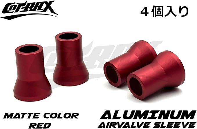 【COTRAX】アルミエアバルブスリーブ 4個set TR413 ゴムバルブ用 軽量アルミ製 全12色 エアバルブキャップ ホイール バルブ保護 ドレスアップ カスタム 自動車 バイク(マットレッド)