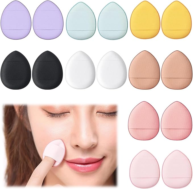 クッションファンデ パフ 指パフ 8色 16枚セット 水滴形 ミニサイズ 柔らかい 乾湿両用 メイク用 ポータブル 化粧パフ ファンデーション スポンジ メイク用品
