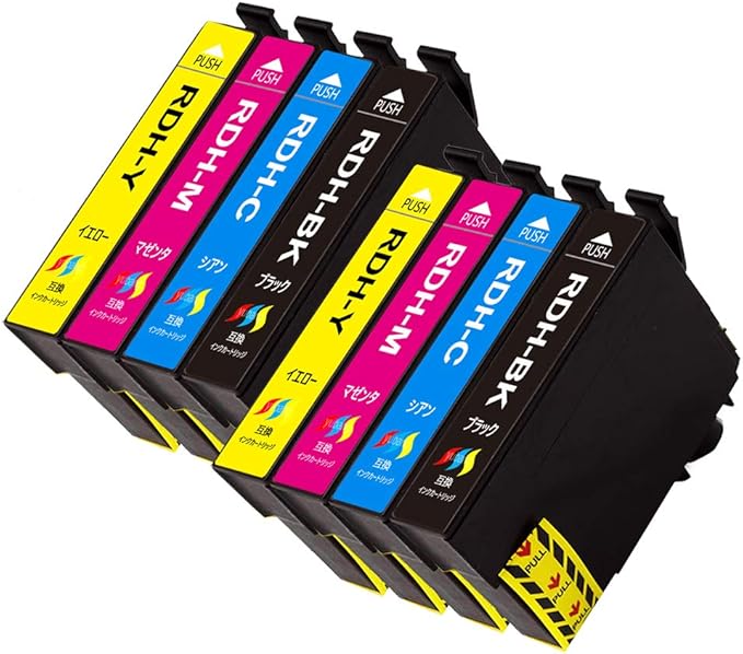 商品内容: エプソン / EPSON 大容量互換インクカートリッジ RDH-4CL 4色マルチパックx2 RDH 8本セット 染料インク:2BK(ブラック)+2C+2M+2Y RDH-BK ブラック / RDH-C シアン / RDH-M マゼンタ / RDH-Y イエロー
