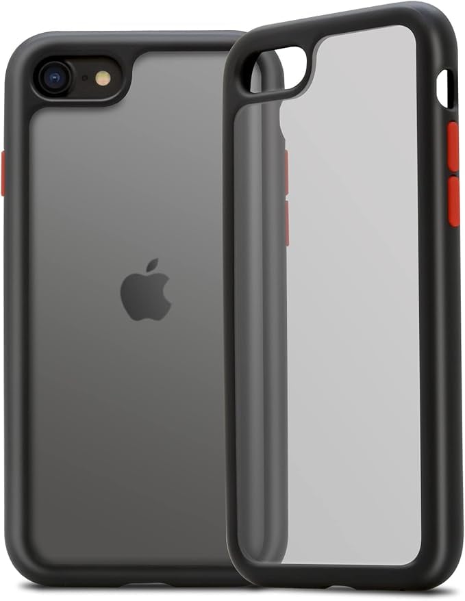 flora iPhone SE ケース iPhoneSE ケース SE3/SE2 第3世代/第2世代 iPhone8 ケース iPhone7 ケース マットブラック Qi/ワイヤレス充電対応 レンズ保護 耐衝撃 ハイブリッド (ブラック(ボタン:レッド)