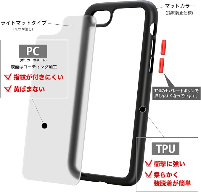 iPhoneSE3/SE2(第3世代/第2世代)/8/7 (4.7インチ)用、PC(ポリカーボネート)+高品質TPUのハイブリッド仕様のケース