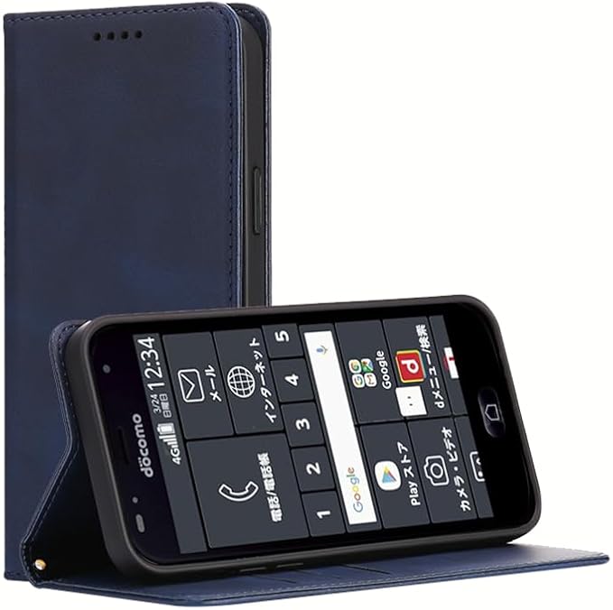 らくらくスマートフォン me F-01L / F-42A ケース 手帳型 カバー PUレザー カード収納 財布型 耐衝撃 ケース マグネット スタンド機能付き 5色 (深い青)