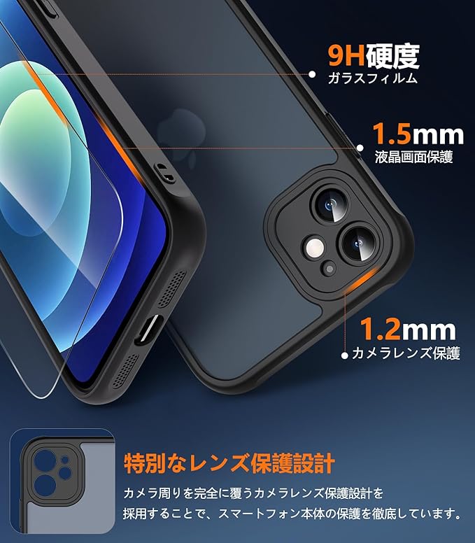 【抜群な耐衝撃性&細部までも保護】厳選された高品質なTPU+PC素材の組み合わせは、耐衝撃性、耐擦り傷性、耐汚れ性、耐久性に優れ、毎日の使用に安心の保護を提供します。また、液晶画面より1mm、カメラより1.2mm高さの高低差デザインに加え、カメラの周りを完全に覆うカメラレンズ保護設計を採用することでスマホ本体の保護を徹底し、平面に置いてもうっかり落としてもスマホをしっかり保護する いphone12 ミニ ケースです。