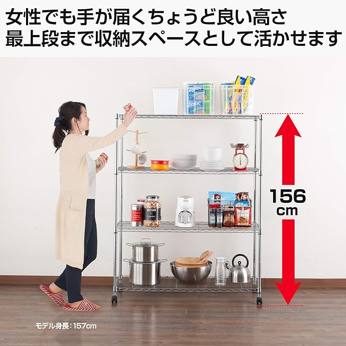 ドウシシャ ルミナス互換 メタルルミナスラック 幅120 4段 スチールラック 収納棚 幅120 奥行46 高さ155cm 全体耐荷重320kg 頑丈 キャスター付き 防錆加工 ポール径25mmパーツ対応 業務用 シェルフ キッチン収納 EL25-12154