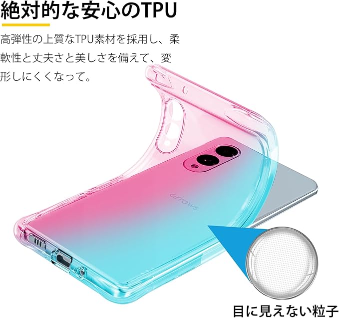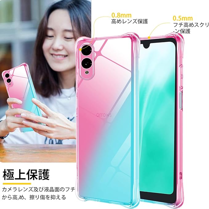 Arrows We2 F-52E ケース クリア TPU 薄型 軽量 arrows We2 F-52E カバー グラデーション色 ケース 耐衝撃 米軍MIL規格取得 滑り止め 黄変防止 防塵 一体型 人気 携帯カバー (ピンクグリーン)