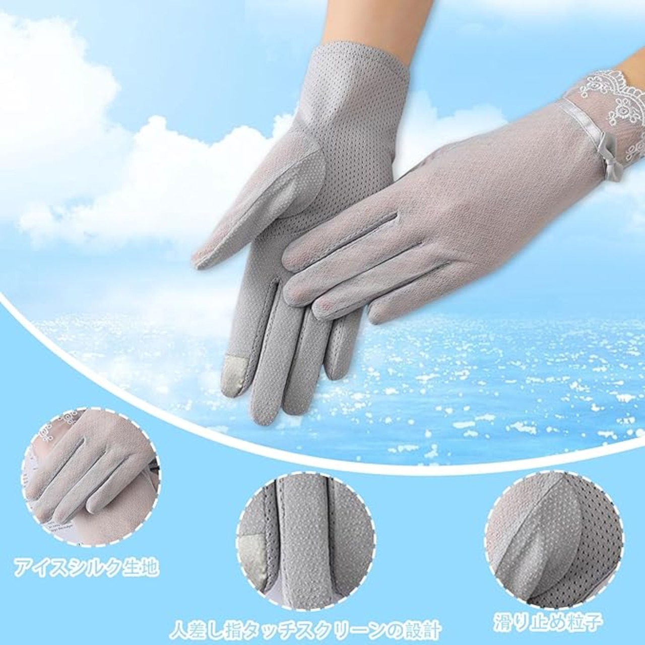 [Umeloeo] レディース 手袋 uvカット レース 薄手 おしゃれ 花柄 UV手袋 グローブ 日焼け止め 滑り止め メッシュ素材 通気 紫外線対策 スマホ対応 通勤 通学 自転車 結婚式 運転手袋 春夏用