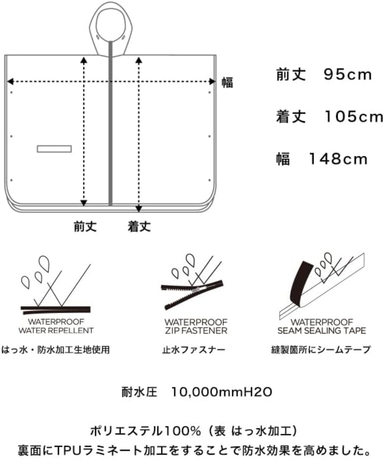 素材:ポリエステル100%(表:はっ水加工 / 裏:TPUラミネート加工)