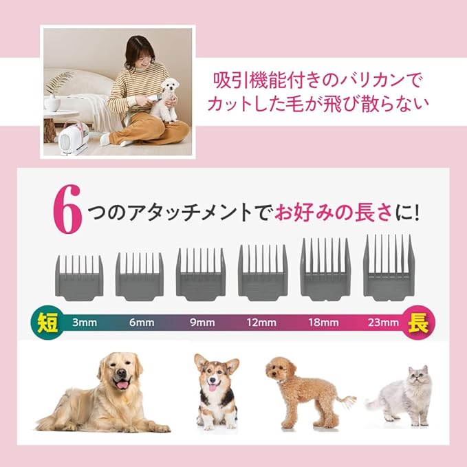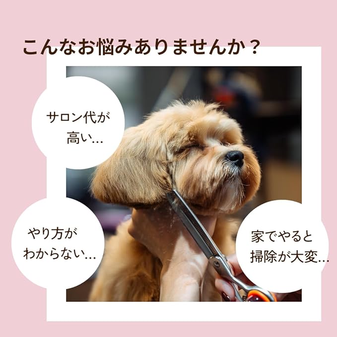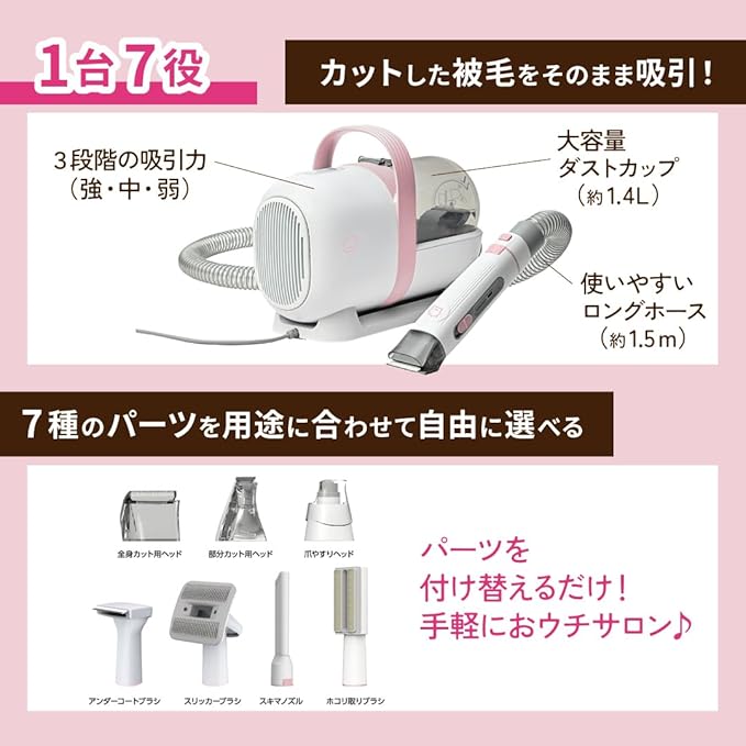 カットした被毛をそのまま吸引!なでるだけ!ホコリや抜け毛もスッキリ!ブラシでスッキリ!リビングでも散らからない!おうちサロンでキレイ!