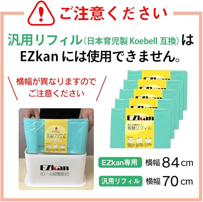 【においをブロックする高密度ポリエチレン製 & 無香料タイプ】 EZkan(EZ270)専用の取り換えロールです。においをブロックする高密度ポリエチレン製。 さらに、日本人には気になる独特なパウダーのにおいを取り除いた無香料タイプ。「パウダーの香りが苦手!」というお客様の声にお応えして、無香料タイプをご用意いたしました。