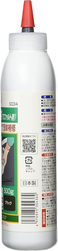 アサヒペン モルタル補修材 床用ひび割れ補修材(アスファルト用) 500g S024ブラック 床用 ノズル付き 流し込むだけ簡単補修 日本製