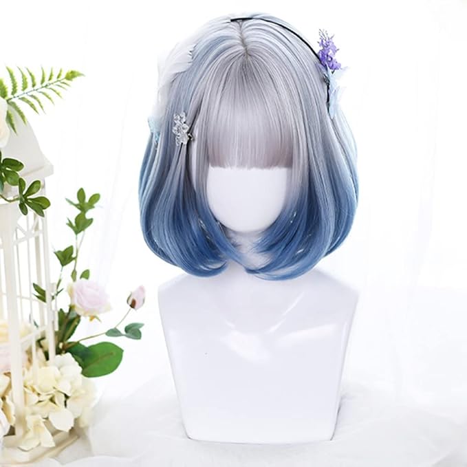 フルウィッグ レディーズ ボブ ショート ストレート Lolita ぱっつん前髪 ウィッグ ロリータ 原宿風 GAL系 ゴスロリ カツラ 耐熱 メッシュ ゴシック 森ガール ゆめかわいい お姫 小顔 パーティー ハロウィン 仮装 日常 かつら wig グラデーション