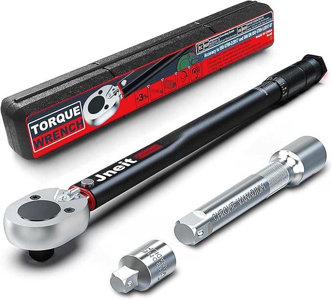 Jneit トルクレンチ 車 タイヤ交換 差込角12.7mm 20-230Nm プレセット型 とるくレンチ 精度 3% 125mmエクステンションバー 3/8”変換ソケット ブラック
