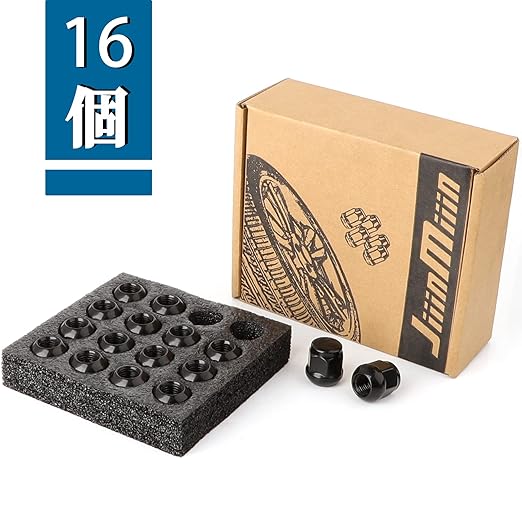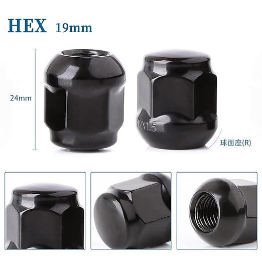 JiiinMiiin ホイールナット M12 P1.5 ホンダに適用 球面座 R12 長さ24mm ラッグナット 自動車用ショートナット 19HEX スチル製 ブラック 16個セット
