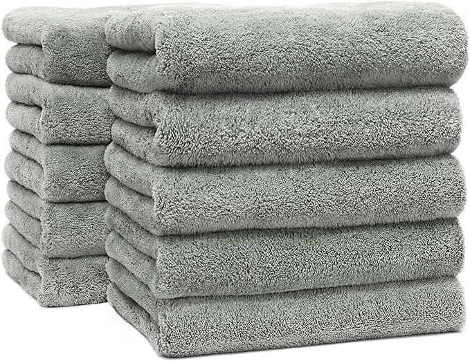 フェイスタオル 10枚セット 吸水速乾 無地 ふわふわ なめらか 速乾 耐久性 毛羽落ち少ない 引っ掛けやすい 人気 10枚 家庭用 業務用 極細繊維 抗菌 防臭 通気 (75cmX35cm, グレー)