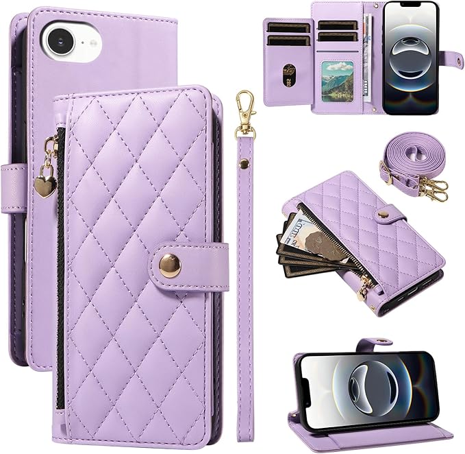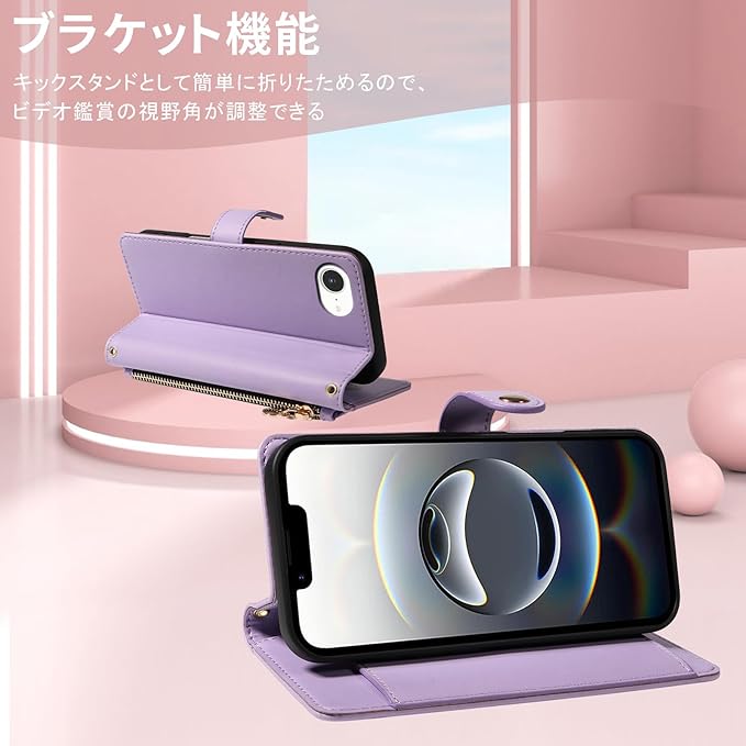 Kitzomi iPhone 16E/iPhone SE4 ケース 手帳型 財布型 耐衝撃 スマホケース iphone 16e 手帳型 カード収納 いphone16e ケース 手帳型用 スマホ カメラ保護 傷防止 iphone se4 ケース カバー[パープル]