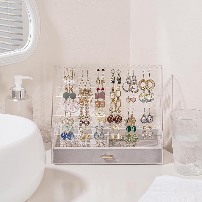 Lolalet ジュエリーケース イヤリング収納 透明アクリル ピアス収納ラック ジュエリーディスプレイ 女性 プレゼント