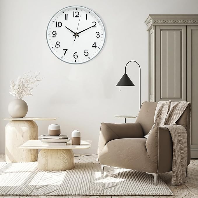 【モダンなデザイン】 大きくてクリアな3Dアラビア数字で、お部屋の隅から見やすいです。この12インチのラウンドウォールクロックは、モダン、コンテンポラリー、伝統的なホームデコレーションを引き立てます。リビングルーム、ダイニングルーム、寝室、キッチンなどに適しています。