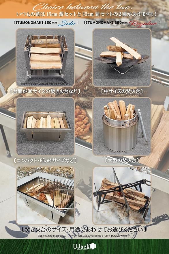 キャンプシーンをさらに快適に!「いつもの薪 - ITUMONO MAKI」は、焚火台のサイズや用途に合わせて選べる2種類の薪セットをご用意しました。15cmの「Soloサイズ」と35cmの「Regularサイズ」で、キャンプスタイルにぴったりの薪をお届けします。サイトに馴染むデザインパッケージは、初心者からベテランキャンパーまで幅広い層に支持されています。