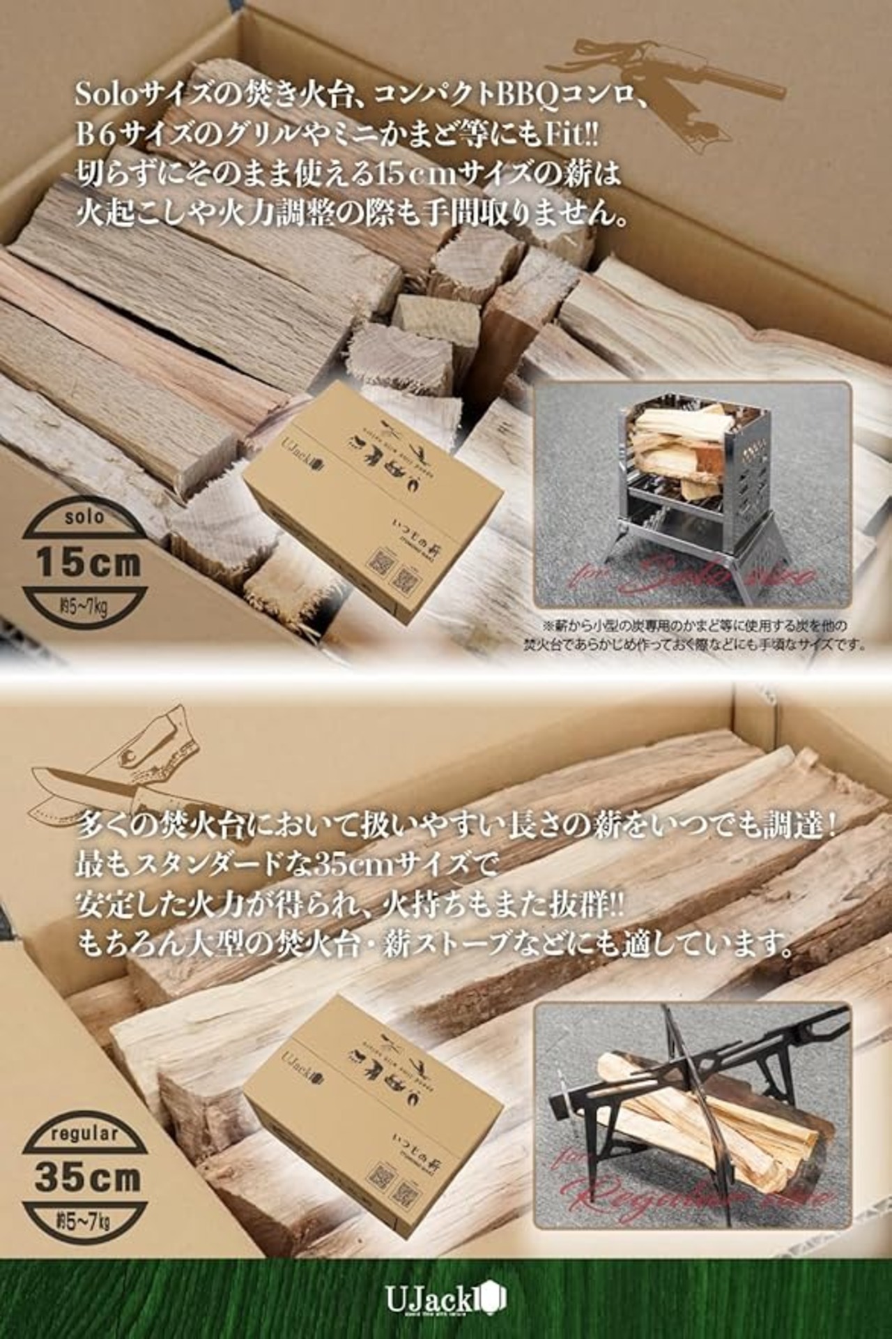 UJack(ユージャック) 薪 いつもの薪 広葉樹 天然 国産薪 乾燥 約5kg~7kg 80サイズ (15cmミニ薪)