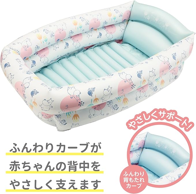 永和 ムーミンふんわりコンパクトバス ブルー ベビー 入浴・スキンケア バスタブ・バスシート 沐浴 赤ちゃん お風呂 新生児 空気式 水抜き栓付き 背中にフィット 小さく折り畳める