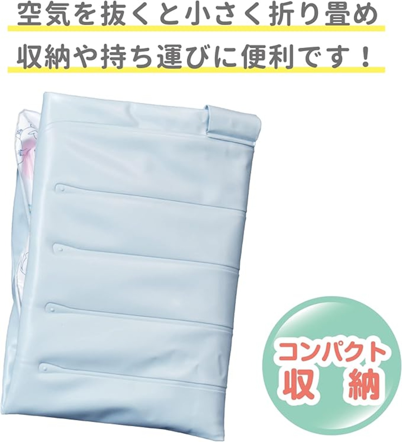 空気を抜けばコンパクトに小さくたためて、持ち運びに便利です。
