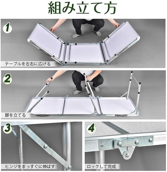 【商品内容】:アウトドアテーブル【カラー】:ダークグレー/ライトグレー/ナチュラル【組み立て時サイズ】:(約)180 60 53/61/70cm【収納時サイズ】:(約)60 61 9.5cm【重量】:(約)5.8kg【耐荷重】:(約)30kg【材質】:アルミニウム合金※海外輸入商品により、汚れ/ダメージ等がついている場合がございます。※仕様は改善の為に予告なく変更する場合があります。
