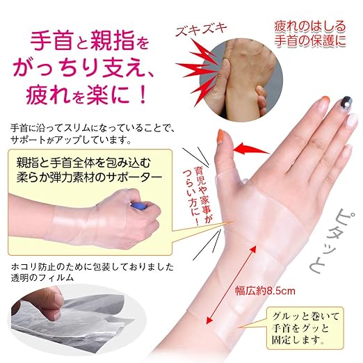 手首サポーター, 親指, 手サポート, ワンタッチテーピング型, シリコン素材, 固定力調整, 水仕事可能, マウスパッド手首, 腕, 固定, サポート, 家事, 左右手両用可能, フリーサイズ, 1枚入, 水仕事可能 Meidlan (クリア)