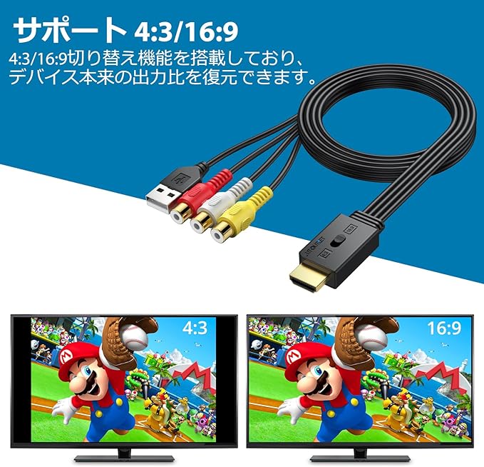 【RCA to HDMIコンバーター】:このRCA to HDMIアダプターは、アナログRCAコンポジット信号を入力してHDMI 1080P (60hz)/720P (60hz)出力に変換できます。スマートテレビやモニターでレトロゲームをプレイでき、子供時代を思い出させることができます(注: HDMI から RCA への変換はサポートされていません)