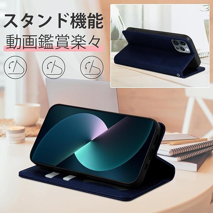 [使いに便利]: 日常使いに便利な機能を多数搭載した。❶水平に置くと、より良い角度でビデオを見たり読書したりするのに簡単に調整できます❷カード収納機能❸内側のコインポケットには少額の現金を収納可能