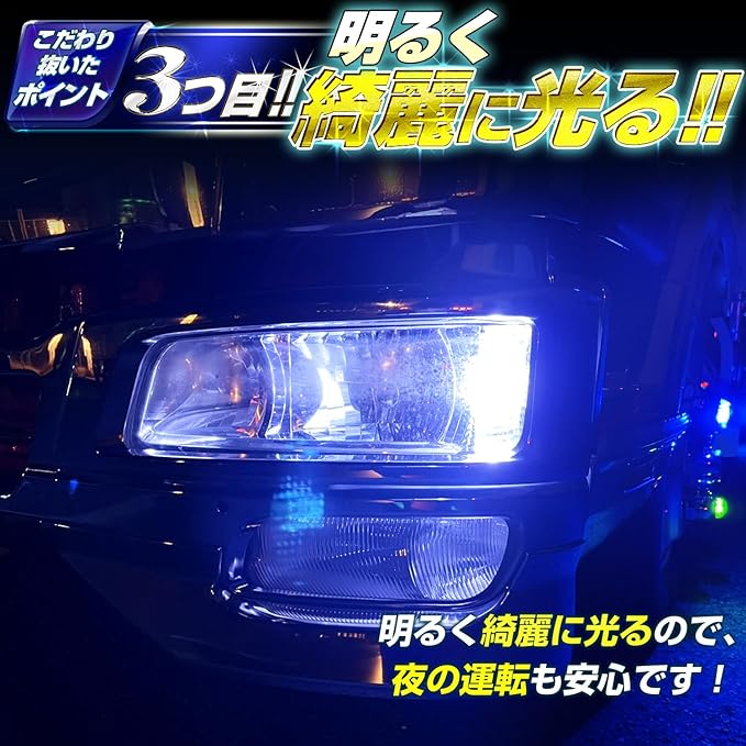✅選ばれるポイント3つ目【明るく綺麗に光る!】竹村商会のt10ポジション球は、明るく綺麗に光るので、夜でも愛車がカッコよく見えます!さらに竹村商会のポジションランプは、明るく綺麗に光るので夜の運転も安心です!