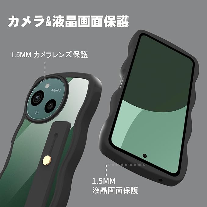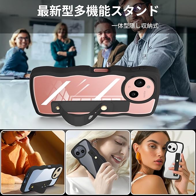AQUOS sense9 ケース クリア スタンド機能 AQUOS sense9 SH-53E スマホケース 耐衝撃 カバー 透明 軽量 薄型 おしゃれ 人気 ストラップホール (ブラック)