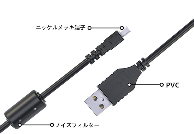 USB ミニ8ピン平型 ケーブル デジタルカメラ用 1m wuernine USB A-mini 8pin Nikon用 ニコン用 富士フイルムなど対応 カメラ用コード