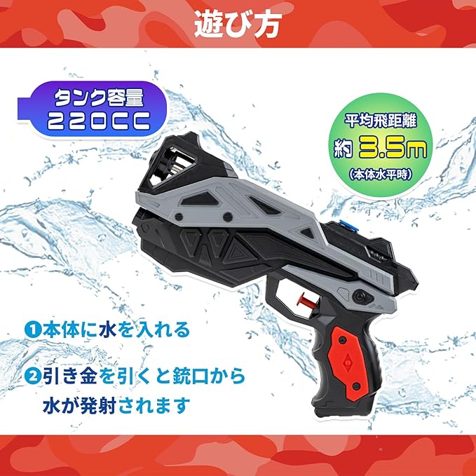 ●重厚感のあるデザインと男の子向けのカラーリングがかっこいい、片手で使えるコンパクトな水鉄砲(4個セット)