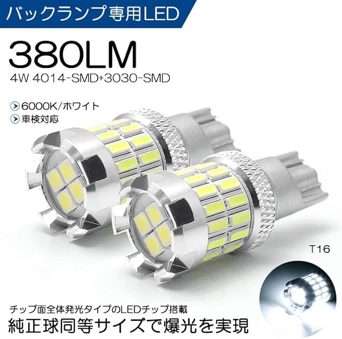 HA25S/HA25V アルト LED バックランプ T16 4W 4014/3030-SMD 380ルーメン 全方向拡散 6000K/ホワイト 車検対応 2個入り1セット