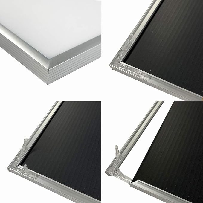 細身なシンプルデザインでありながら、ハイエンドモデルのクオリティをあわせ持つアルミフレームです。特にポスターなどを飾るのに最適です。ポスターの他にも、中台紙を1枚はずすだけで最大3mm厚まで対応。作品の出し入れは、コインで回せるネジ2個をゆるめるだけ。タテヨコどちらでも使用出来ます。吊下げ用のヒモ付属。