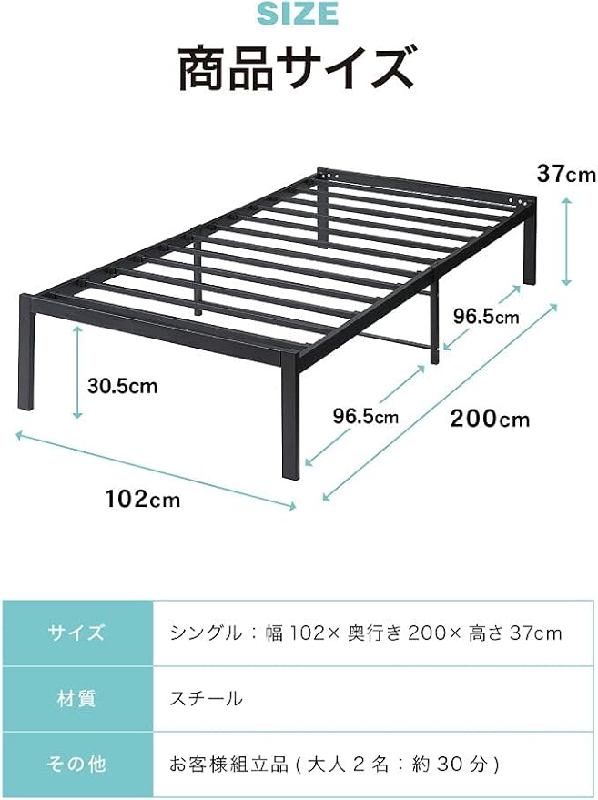 ■サイズ 【シングル】幅102 奥行き200 高さ37cm 【セミダブル】幅125 奥行き200 高さ37cm 【ダブル】幅145 奥行き200 高さ37cm