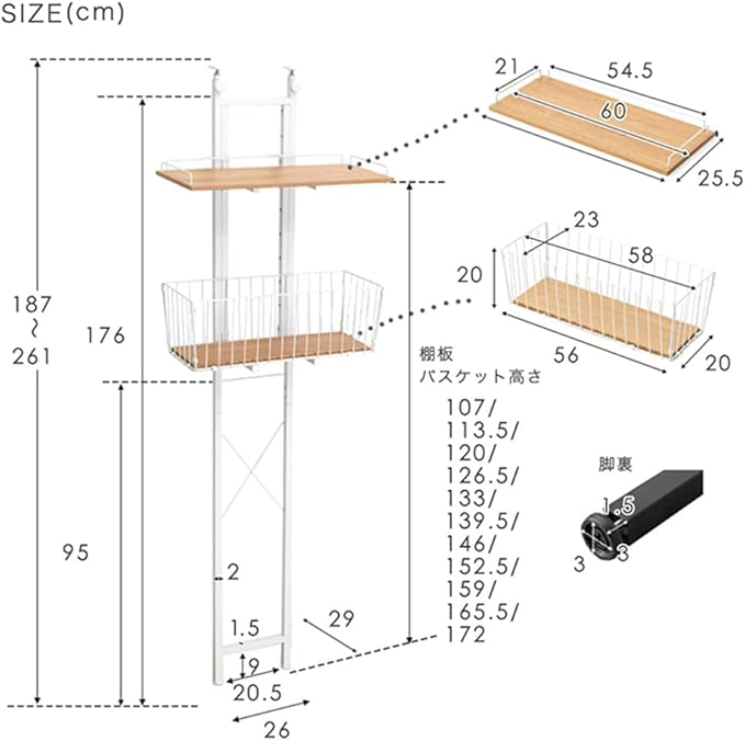 サイズ 1)幅60 奥行29 高さ187~261cm