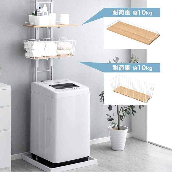 【スタッフのおすすめポイント】・デッドスペースを有効活用!突っ張り式 ・タオルや洗濯物を入れるのに便利なバスケット付き ・幅60cmのスリム設計 ・棚板・バスケットは9段階高さ調節OK ・2ステップで設置ラクラク! ・防水パンの上にも設置可能