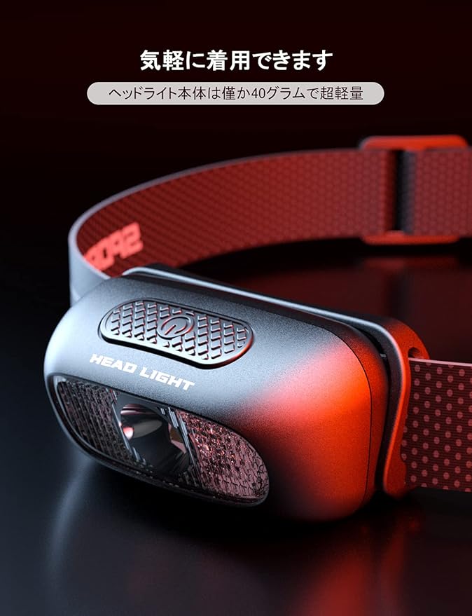 【軽量&フィット感】:ヘッドライト本体の重さは約40gと非常に軽量です、サイズは3x3.3x6cmだけで。また、ソフトベルトを採用され、夜釣りなどの場合は長時間装着しても首にストレスを与えません。登山、釣り、キャンプ、ハイキングや自動車整備などでのアウトドア活動に活躍します。