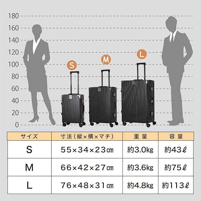 【軽量で頑丈】 このキャリーケースは、軽量でありながら頑丈な設計で作られています。高品質の素材を使用しているため、長期間にわたり耐久性があり、旅行中の荷物の保護に寄与します。