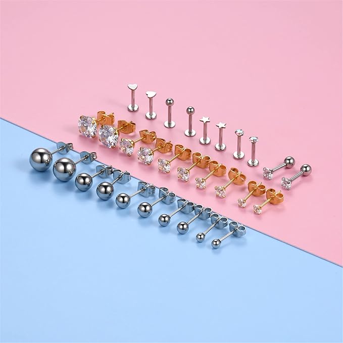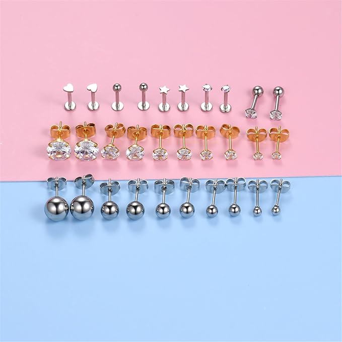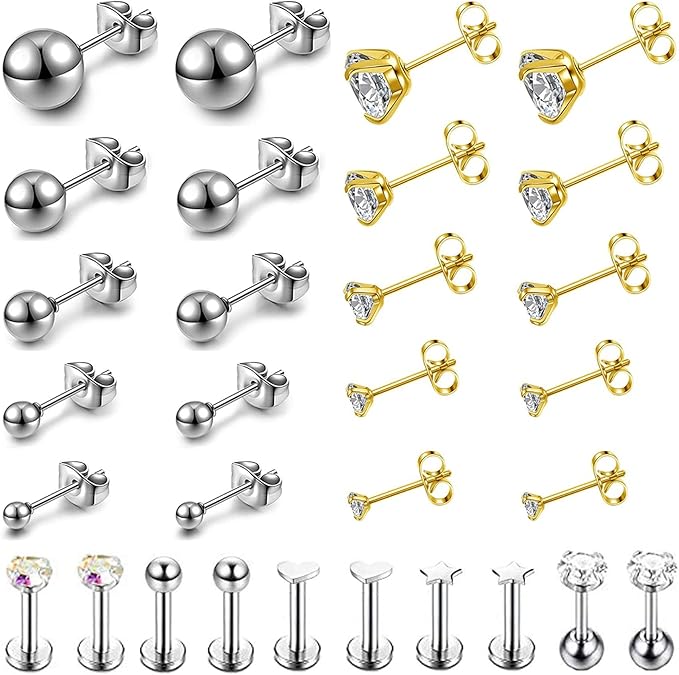 [Aroncent] ボールピアス 軟骨ピアス ボディピアス 20g 鼻ピ ダイヤ ファーストピアス ストレート バーベル メンズ レディース ファッション アクセサリー(30点セット)