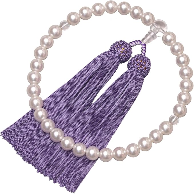 通雲念珠屋 数珠 女性用 本水晶 星月菩提樹 念珠 葬式 葬儀 お通夜 略式 じゅず 数珠袋付き すべての宗派で使える (貝パール/藤)