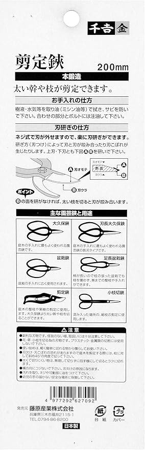 SENKICHI 千吉 金 本鍛造 剪定鋏 生木切断約15mmまで対応 全長200mm