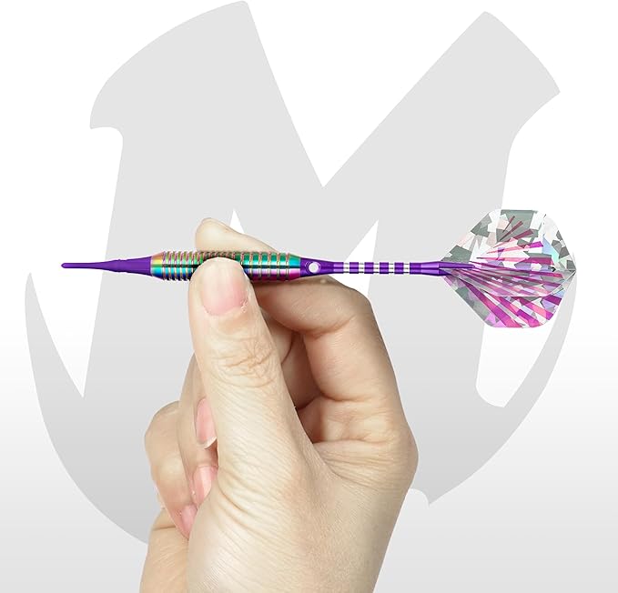 16gの軽量で柔軟な3本のダーツと ,プロフェッショナル仕様のアルミシャフトを採用したソフトチップダーツセットです。マイダーツ