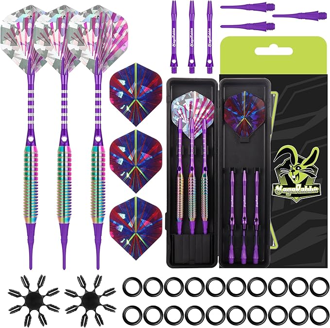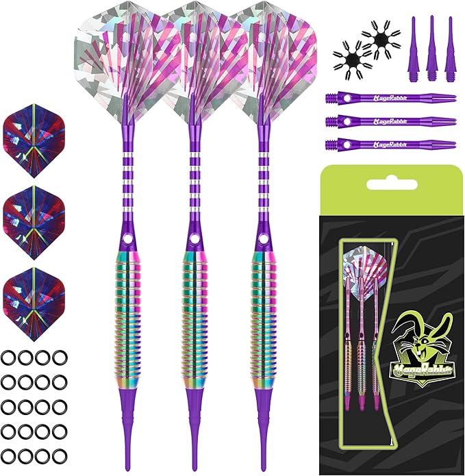 MageRabbitソフトチップダーツセット、3本のアルミシャフト、プロフェッショナルダーツ、3枚の予備ダーツフライト、3本の交換用プラスチックシャフト付き、銅素材のダーツ 16g 電子ダーツボード用, ダーツ 矢,ダーツ 矢 初心者