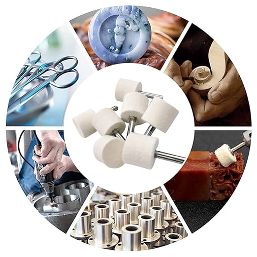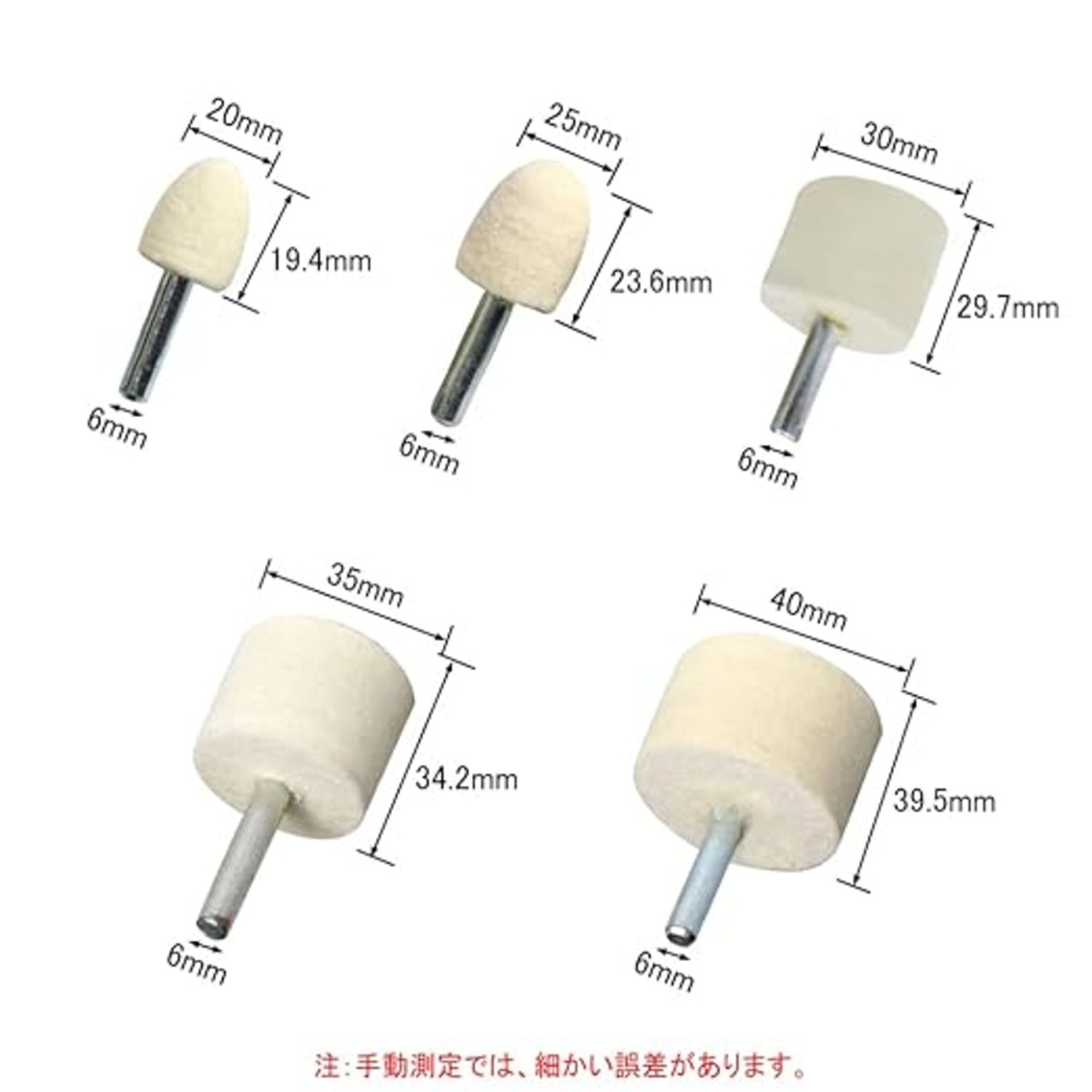 DFsucces フェルトバフ 10ピースセット 6mm軸 軸付フェルト 羊毛研削ヘッド 精密フェルト 電動ドリル用 鏡面研磨用 金属磨き用 仕上げ