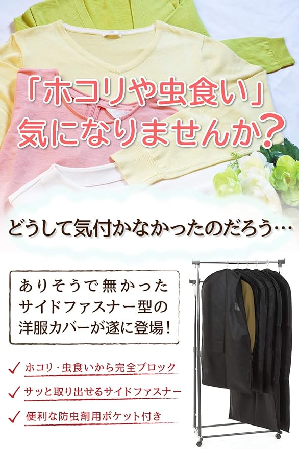 【虫・ホコリを全方位ブロック】衣類の天敵である、虫食い・ほこり・日焼け・湿気の”4大害悪”を全方位からブロックします。類似品の多くは衣類カバーの下部がオープンの状態になっています。RATOM製品は、底面も縫い付けをして、下から侵入するホコリや害虫をブロックできます。衣類カバーに洋服を収納するだけで4大害悪から洋服を守ることができます。