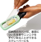 ・おろした生姜などをブレードの裏面からすくい取ることができる、スクレーパー兼ブレードカバー付き