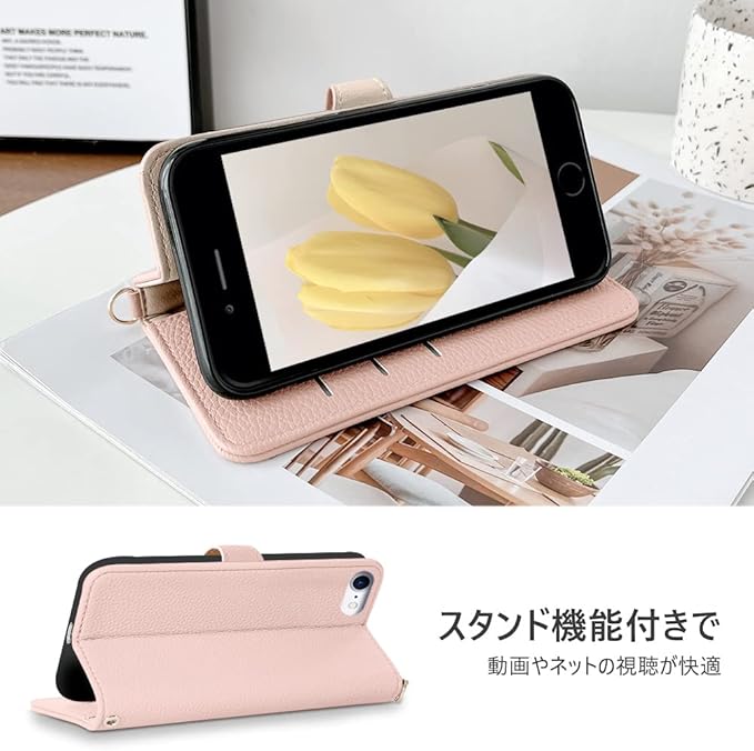 MAGICASE for iPhone SE ケース 手帳型 第3世代 第2世代かわいい iPhone8 ケース 手帳型 おしゃれ スマホケースiphone se 財布型 女性 iPhone SE3/SE2 ケース 手帳型 シンプル 携帯ケース衝撃吸収 全面保護 軽量 アイフォンse ケース 手帳型 スタンド機能 カード収納 大人 人気 贈り物(アプリコットピンク)